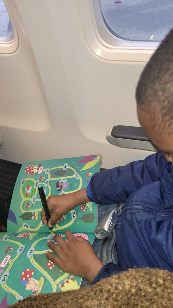 My son wanted to see snow so my sister had this clever idea to make that a reality. This is my kids’ first time on a plane, so I was excited for them yet I didn’t know how they’d react. Watch the trip! This was an 8-hour flight for us. We had one stop in Seattle but that was it. She had it all planned out and he had no idea.
